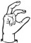 На ћирилици написано НОВАК БИЗУМИЋ састоји се из 12 слова [?]. Исписано ћириличном једноручном азбуком за глувонеме: